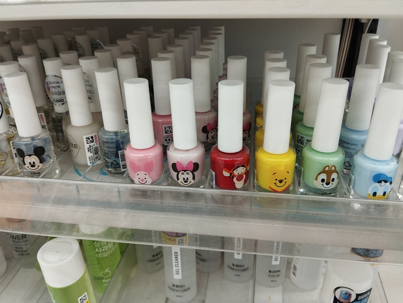 다음은 디즈니의 다양한 캐릭터가 있는 제품입니다. 컬러별로 어울리는 캐릭터가 그려져 있어서 아기자기하게 사용할 수 있는 제품입니다. 선호하는 컬러와 선호하는 매니큐어를 고르는 재미가 있네요. 초등학교 아이들이 좋아할 만한 제품입니다.